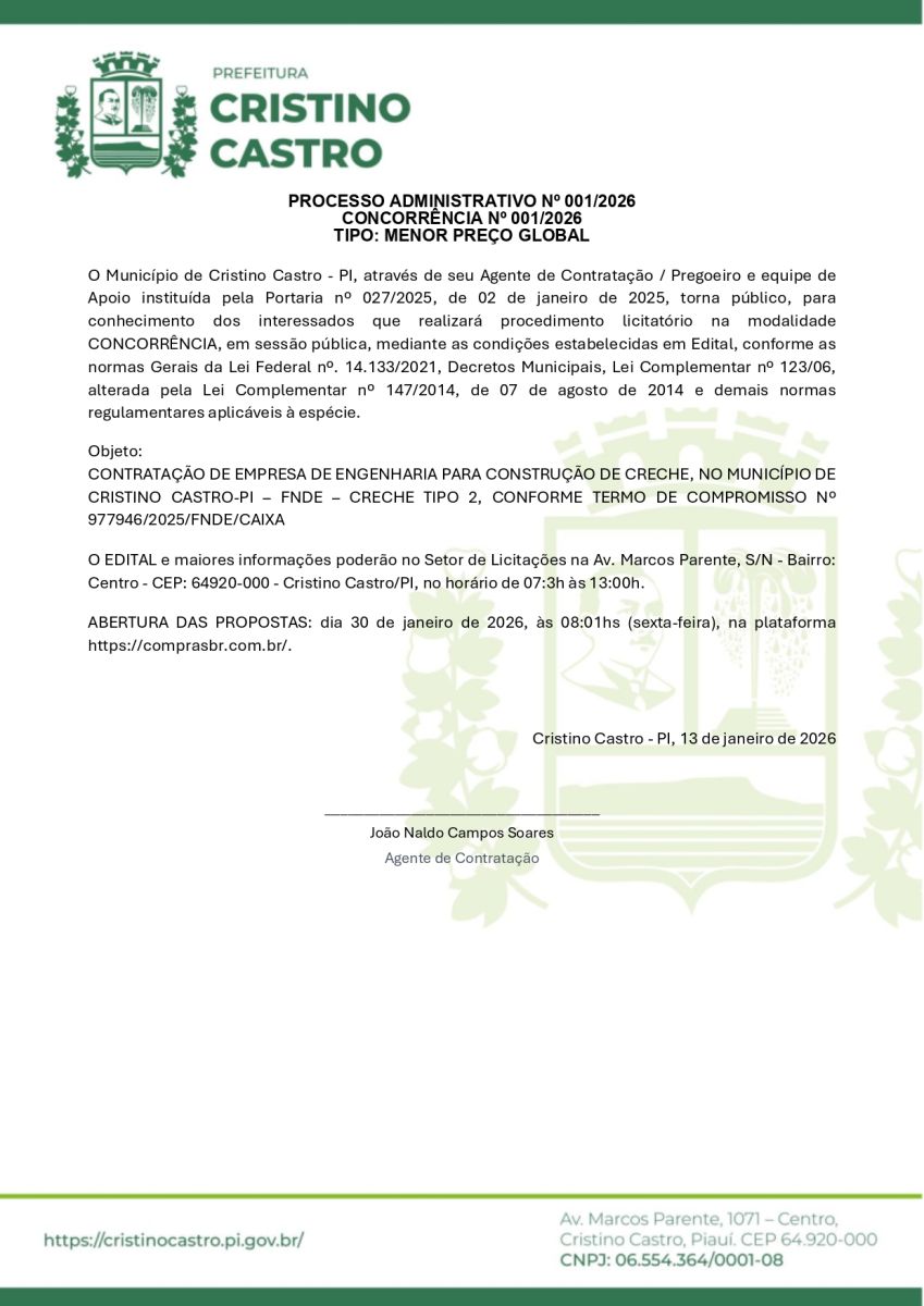 AVISO DE CONCORRÊNCIA Nº 001/2026