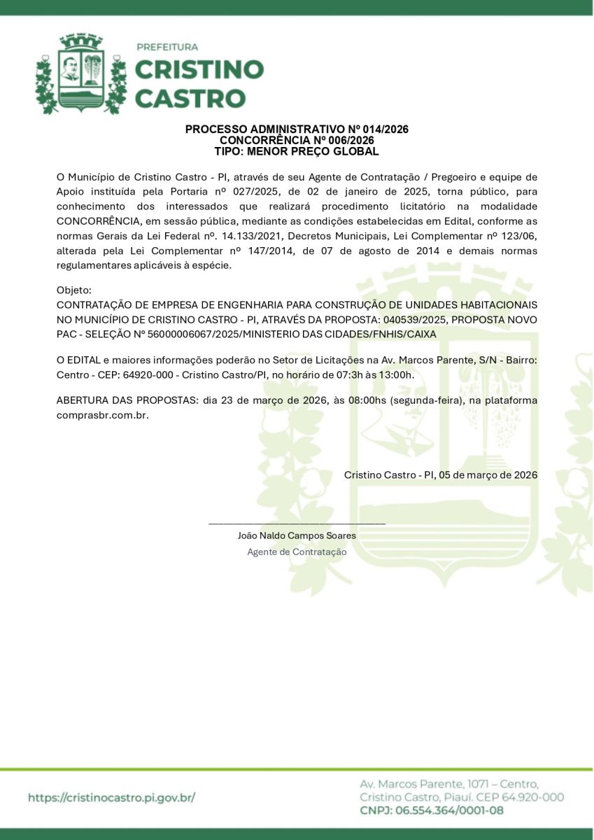 AVISO DE CONCORRÊNCIA Nº 006/2026