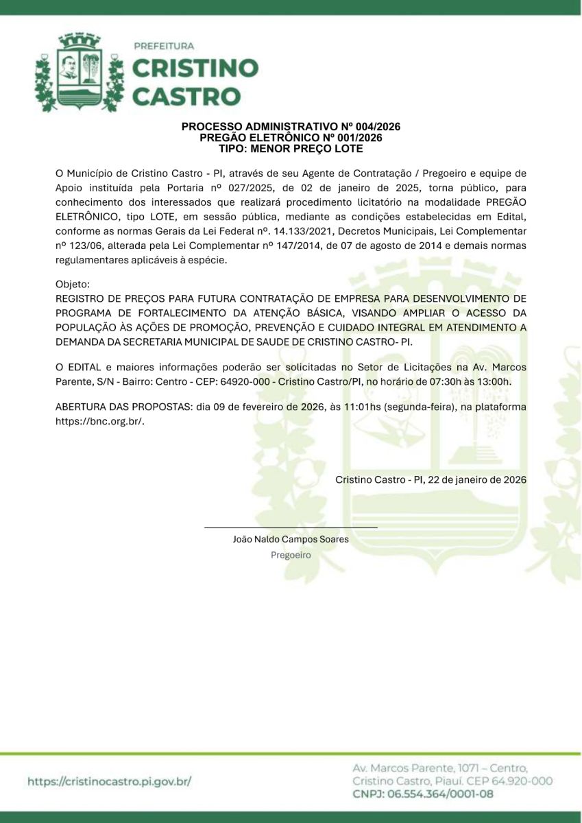 AVISO DE PREGÃO ELETRÔNICO Nº 001/2026